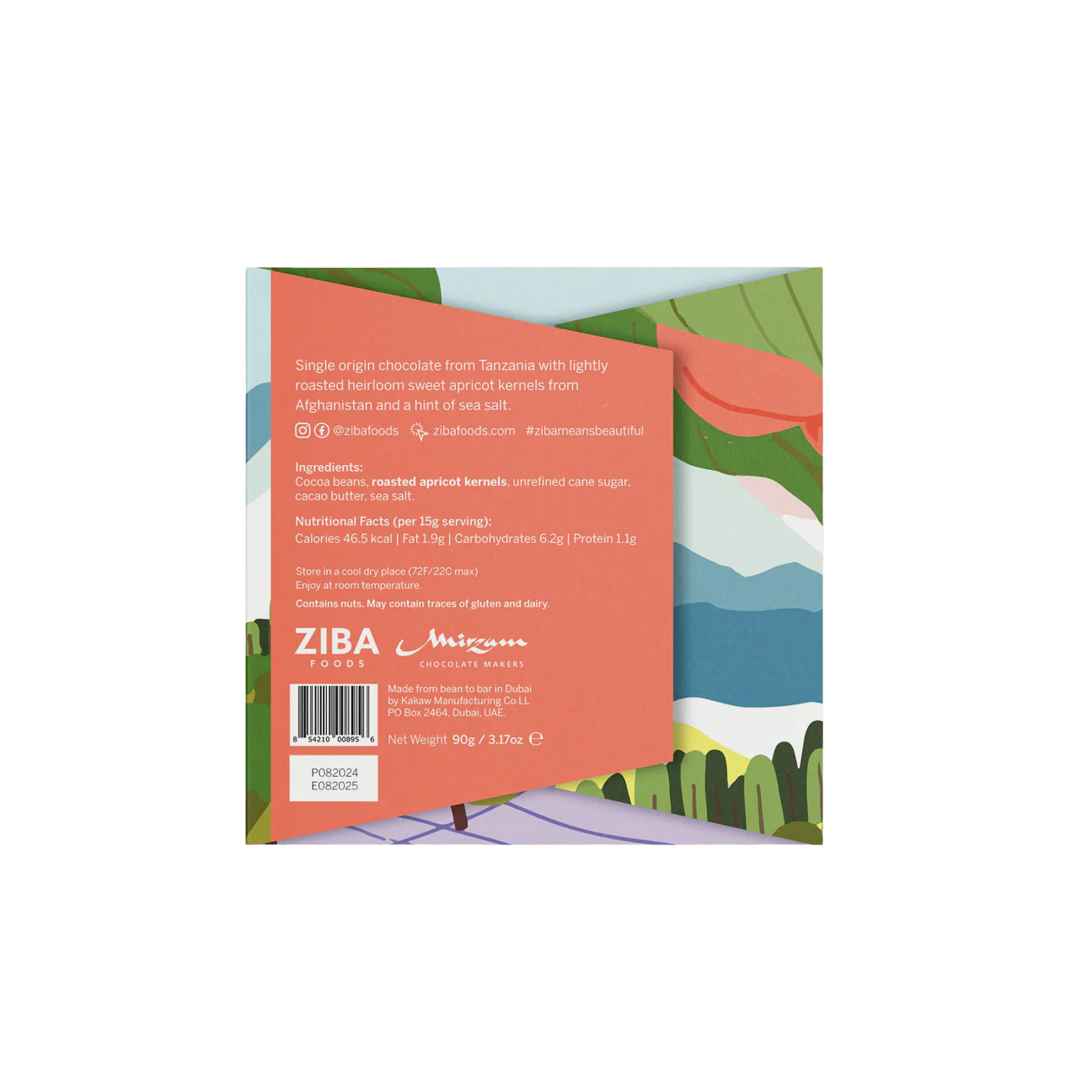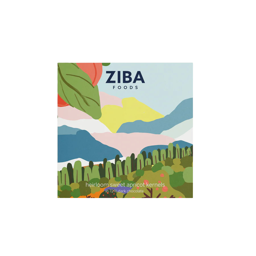 Handcrafted with the finest ingredients by award-winning Mirzam Chocolate Makers, the ZIBA Heirloom Sweet Apricot Kernel chocolate bar is made using single-origin chocolate from Tanzania and our lightly roasted heirloom sweet apricot kernels. This combination is sweet, floral, and lightly crunchy with notes of honeyed marzipan.